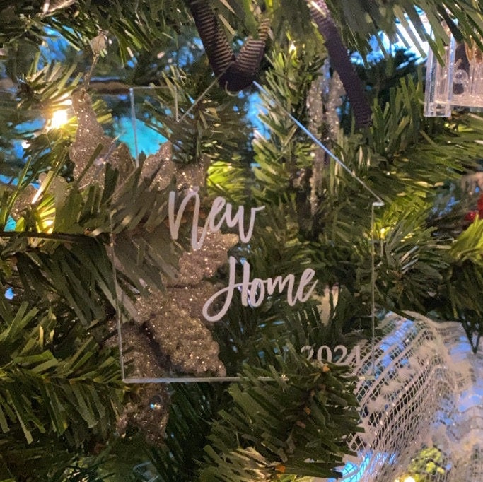 Our personalized new home ornament is hand crafted and made to order. This ornament is customizable with the year chosen. Each ornament will come with your choice of a black ribbon, red ribbon, white ribbon, LE (light) Pink Ribbon, LE Green Ribbon, LE Silver Ribbon, for hanging. Each ornament is available in clear acrylic (shown), mirrored gold acrylic or mirrored rose gold acrylic.